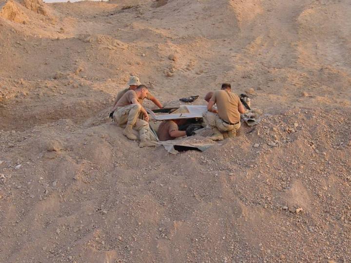 Desde el comienzo de la campaña Estadounidense en Irak en marzo del 2003 muchos se preguntaron donde se ocultaban los cazas y otros aviones del régimen de Saddam. No era de extrañar que no se les viese en el aire ya que seguramente habrían escarmentado en la batalla aérea de la 1ª Guerra del Golfo, pero es que tampoco estaban en tierra, o al menos de forma visible. Aun descontando los cazas destruidos en tierra, en aire, o huidos a Irán, faltaban algunos. Una vez que las tropas de tierra empezaron a avanzar dentro del territorio irakí empezaron a encontrar algunas sorpresas enterradas.